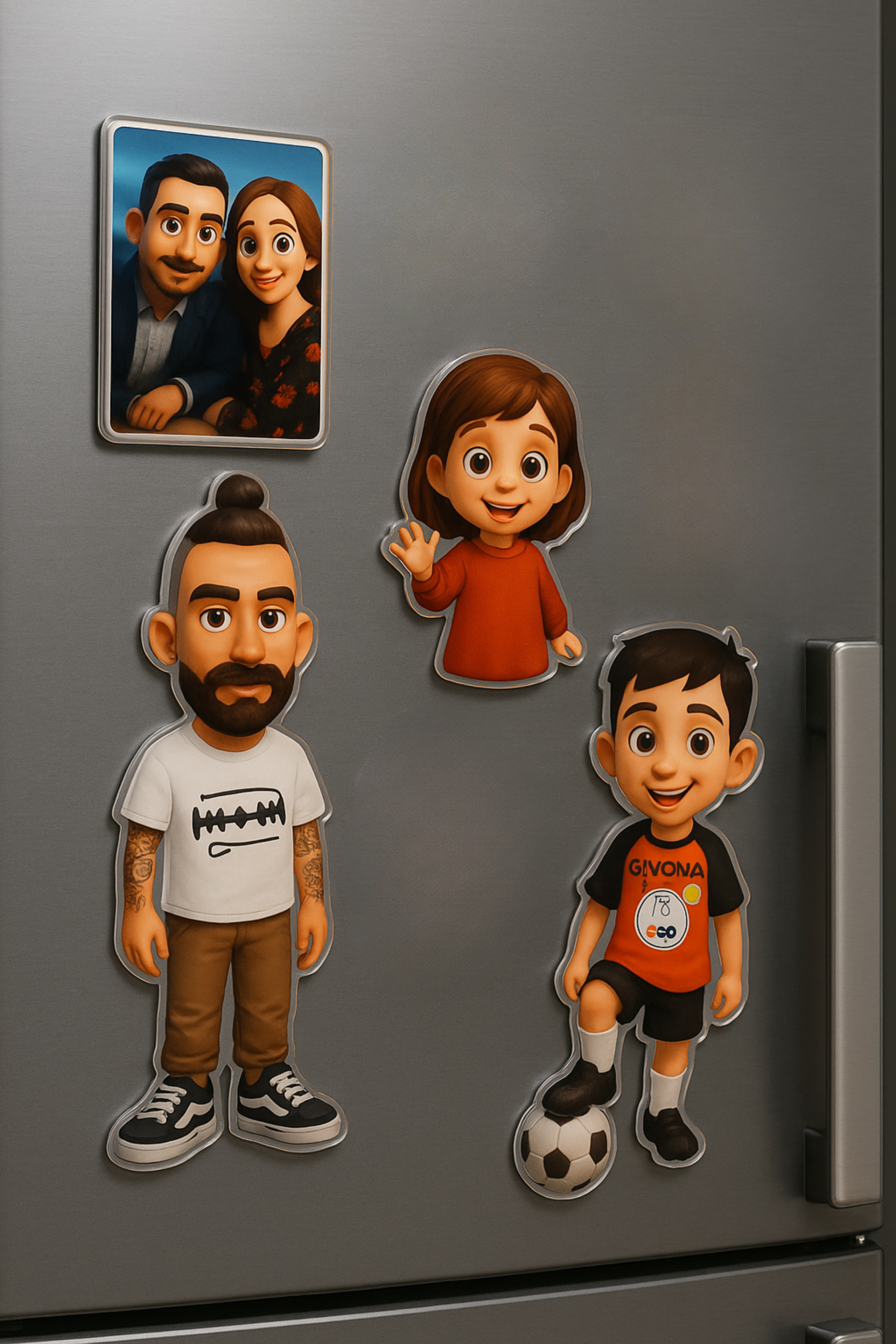 Nuestros imanes personalizados de metacrilato son el detalle perfecto para darle un toque único y divertido a cualquier superficie magnética. Diseñados con tu foto en estilo cartoon 2D, estos imanes son ideales para decorar la nevera, la oficina, o cualquier espacio que quieras llenar de personalidad. 🎨🖼️